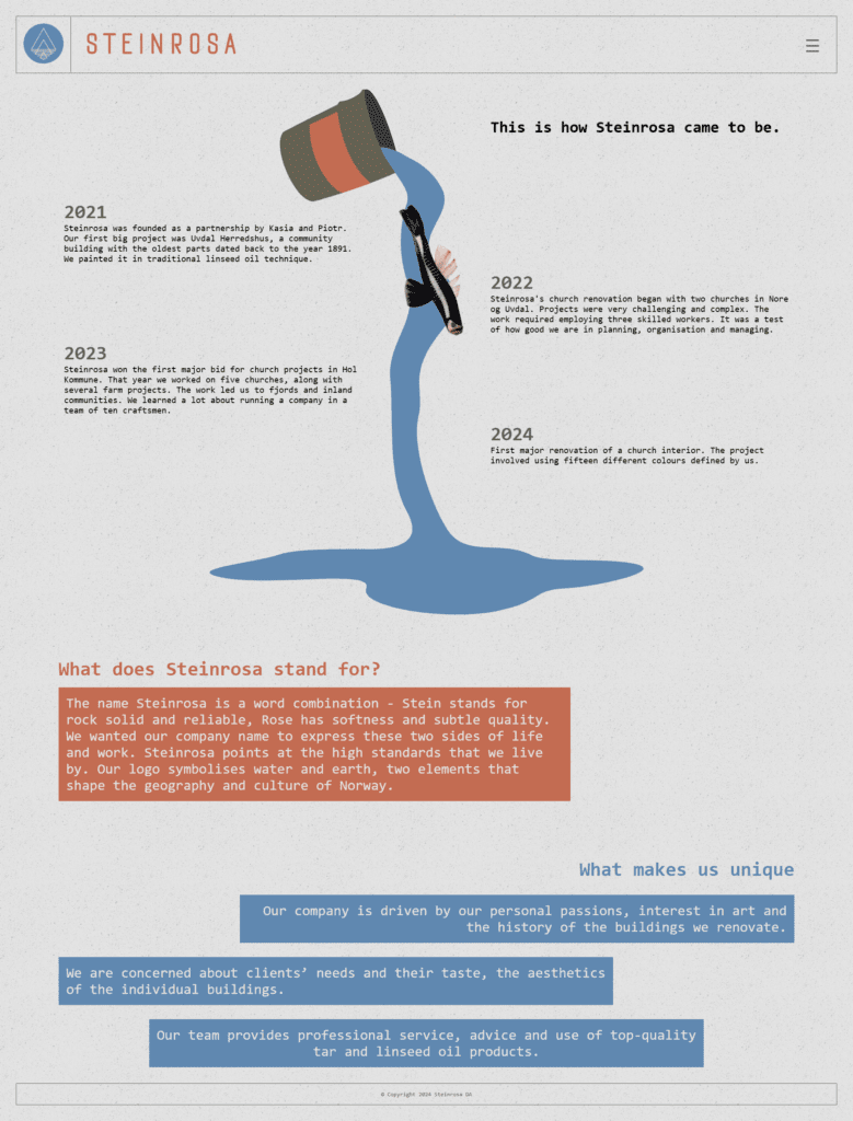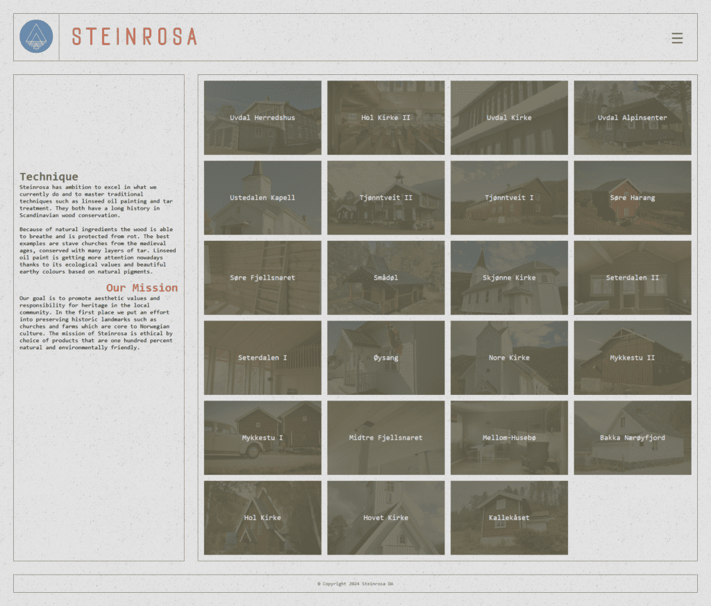 This project involved designing and developing a website for Steinrosa, a Norwegian company specializing in the renovation and conservation of historic wooden buildings.