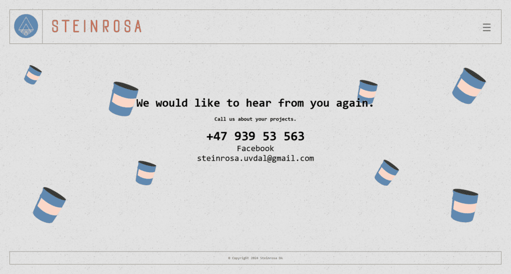 High-quality photos of Steinrosa’s projects are strategically placed to showcase their work without overwhelming the page. Images are accompanied by brief descriptions to provide context.